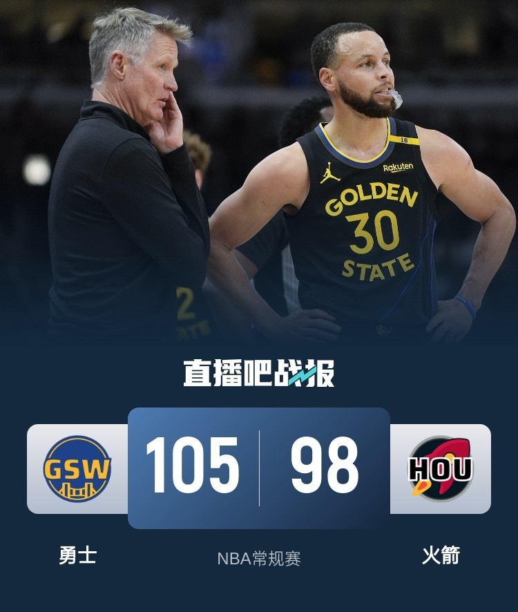 库里27+5 火箭双核低迷替补暴走追回22分 勇士险胜近4战3胜