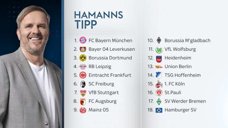 马特乌斯、哈曼、穆斯塔菲全部看好拜仁夺冠,马特乌斯预测多特蒙德、法兰克福、勒沃库森排名第二至第四,霍芬海姆和海登海姆则是惨遭降级。