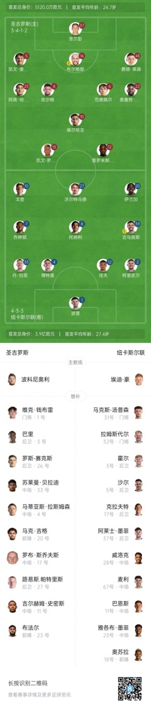 圣吉罗斯vs纽卡首发:沃尔特马德、吉马良斯、戈登出战