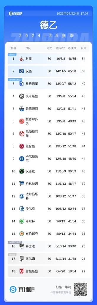 23/24赛季,汉堡排名第四,目睹同城死敌圣保利以微薄的预算夺冠升甲。