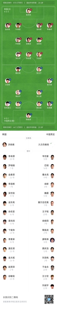 07月07日讯 北京时间今晚19点,东亚杯第1轮,中国男足vs韩国。赛前双方公布了首发阵容,蒯纪闻、吾米提江迎来国足首秀,王钰栋、颜骏凌出战,国足首发11人平均年龄25.1岁。