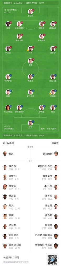 诺丁汉森林首发:26-塞尔斯、5-穆里略、7-内科-威廉姆斯、16-尼古拉斯-多明戈斯、31-米伦科维奇、34-埃纳、8-埃利奥特-安德森、10-吉布斯-怀特、11-克里斯-伍德、14-奥多伊、21-伊兰加